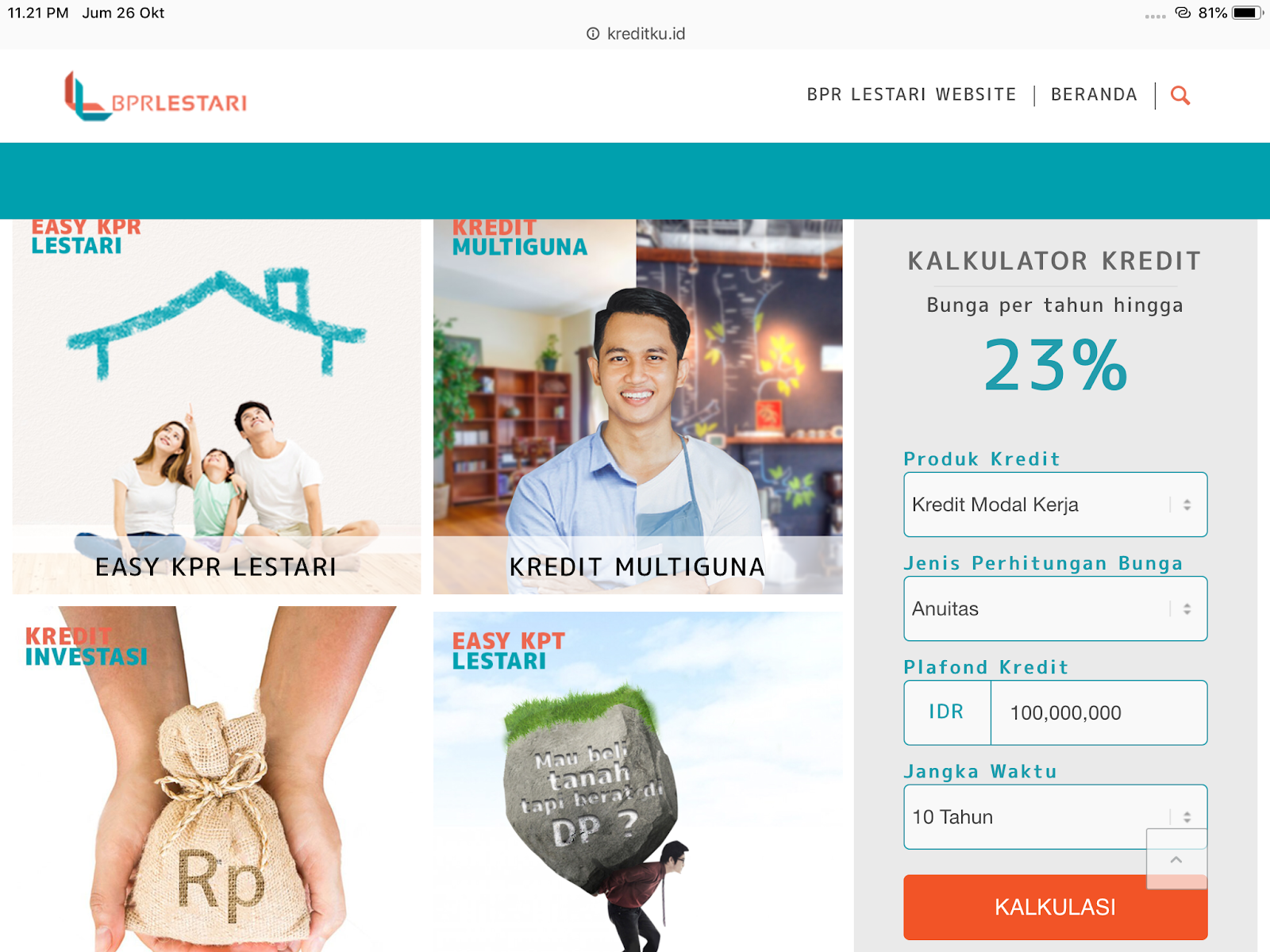 Melalui laman webnya yaitu Kreditku.id nasabah dimudahkan dalam proses penghitungan skema pembayaran bulanan melalui menu kalkulator kredit.