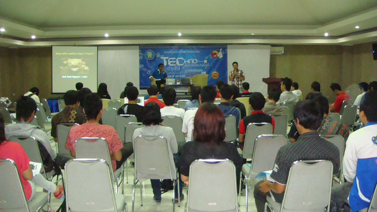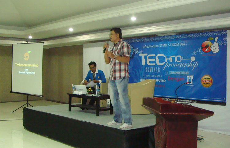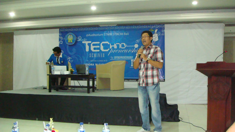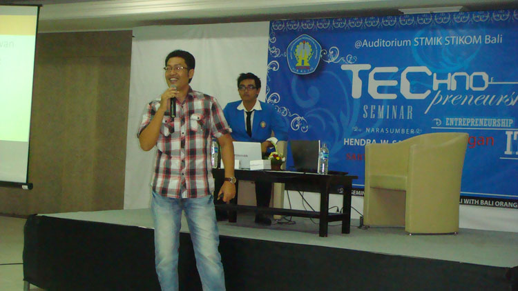 Seminar yang terselanggara oleh senat mahasiswa STIKOM Bali ini dihelat pada 2 Juni 2012 dari jam 10 pagi – 12 siang. Ketika didaulat untuk omong soal Technopreneurship maka yang kuceritakan adalah fakta-fakta berwirausaha, khususnya dalam membangun BOC bersama teamku semenjak tahun 2003 sampai sekarang menjadi perusahaan hosting dan web development. Bukanlah cerita sukses, namun lebih kepada kejadian nyata yang mungkin lepas dari pengamatan masyarakat. Betapa penuh peluh dan tantangan berat yang harus kami lalui.
